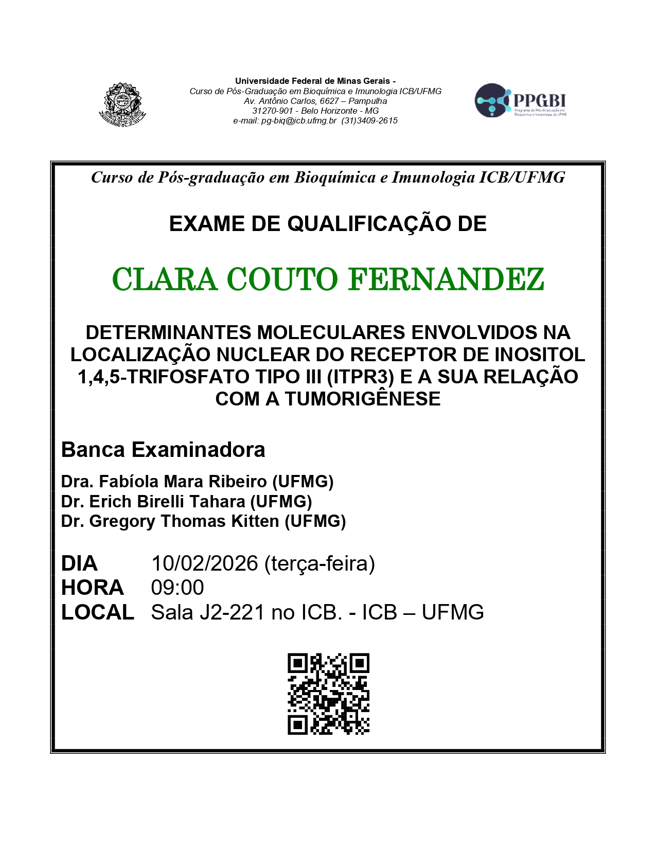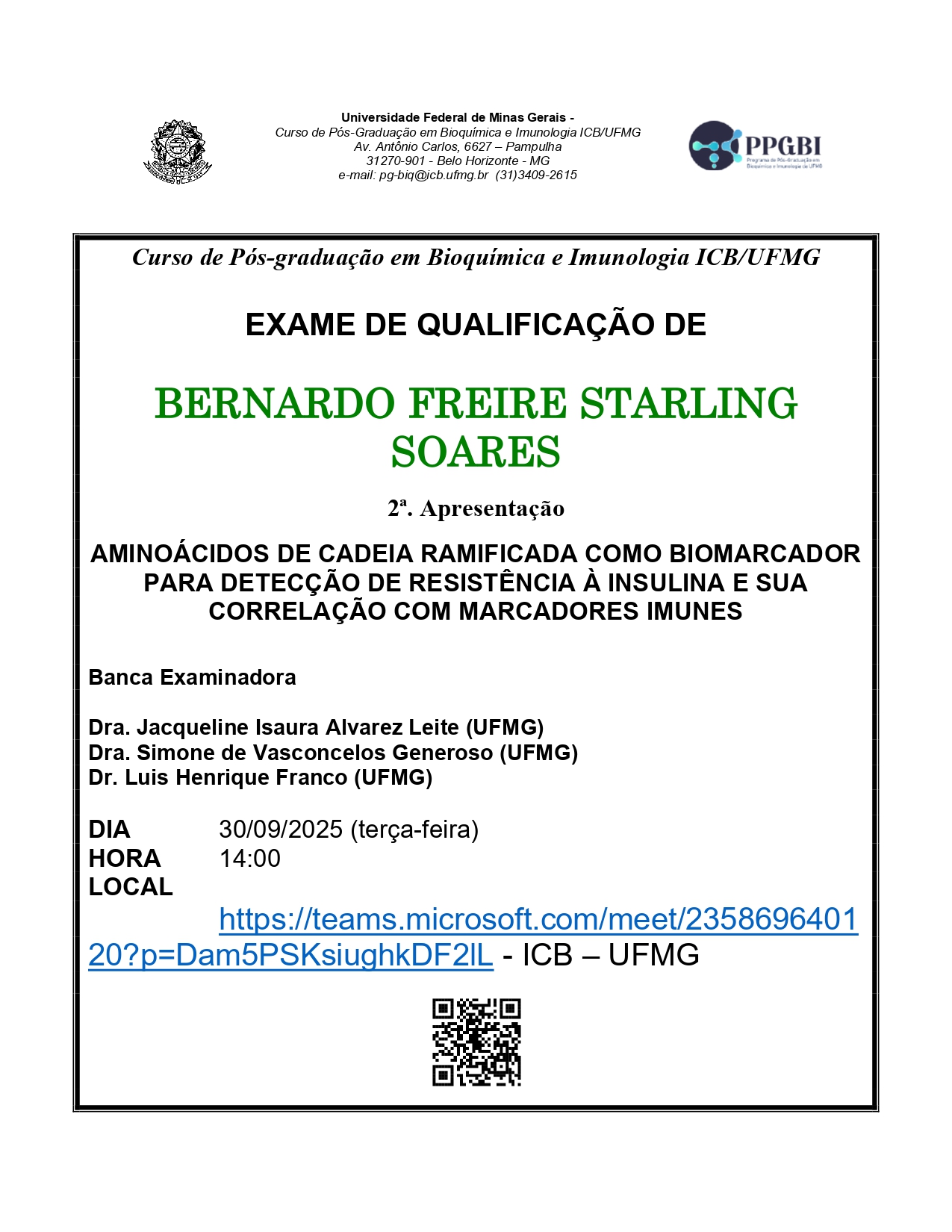 Av. Antônio Carlos, 6627 – ICB – Bloco F – 1º andar – Sala 70 – UFMG – Pampulha – 31270-901 – BH/MG.